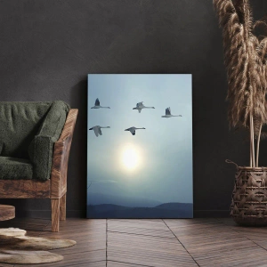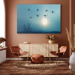 Lærredstryk - Billede på lærred - Flyvende svaner om morgenen - 70x50cm - Farvel til sommeren for et år - Moderne vægdekoration til stue og soveværelse ARTTOR