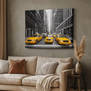 Lærredet er spændt op over rammen. Siderne og kanterne trykkes for at danne en fortsættelse af billedet. Maleriet er klar til at blive hængt op på væggen. Hvert produkt har en bøjle, der er fastgjort til rammen, og et samlesæt (skrue + dyvel).