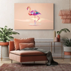 - En abstrakt flamingo i pastelfarver, der udstråler subtilitet og lethed. En perfekt dekoration til interiør inspireret af en moderne stil.