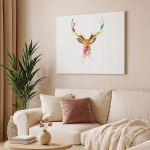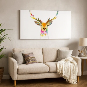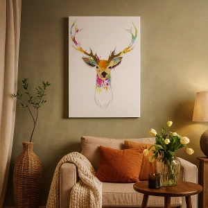 Lærredstryk - Billede på lærred - Blid kronhjort badet i farver - 80x120 cm