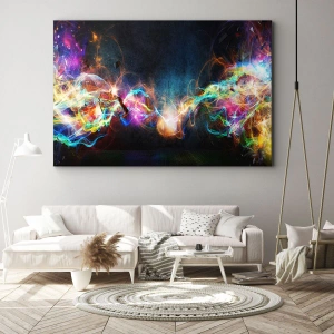 Lærredet er spændt op over rammen. Siderne og kanterne trykkes for at danne en fortsættelse af billedet. Maleriet er klar til at blive hængt op på væggen. Hvert produkt har en bøjle, der er fastgjort til rammen, og et samlesæt (skrue + dyvel).
