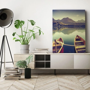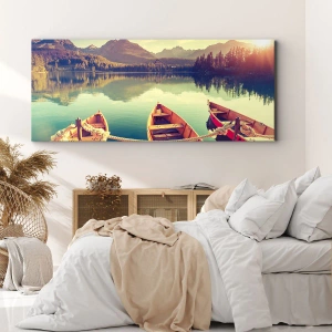 Lærredet er spændt op over rammen. Siderne og kanterne trykkes for at danne en fortsættelse af billedet. Maleriet er klar til at blive hængt op på væggen. Hvert produkt har en bøjle, der er fastgjort til rammen, og et samlesæt (skrue + dyvel).