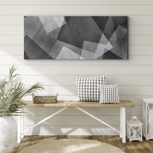 Lærredet er spændt op over rammen. Siderne og kanterne trykkes for at danne en fortsættelse af billedet. Maleriet er klar til at blive hængt op på væggen. Hvert produkt har en bøjle, der er fastgjort til rammen, og et samlesæt (skrue + dyvel).