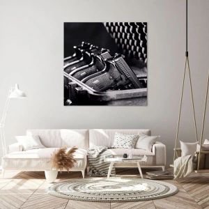 Lærredet er spændt op over rammen. Siderne og kanterne trykkes for at danne en fortsættelse af billedet. Maleriet er klar til at blive hængt op på væggen. Hvert produkt har en bøjle, der er fastgjort til rammen, og et samlesæt (skrue + dyvel).