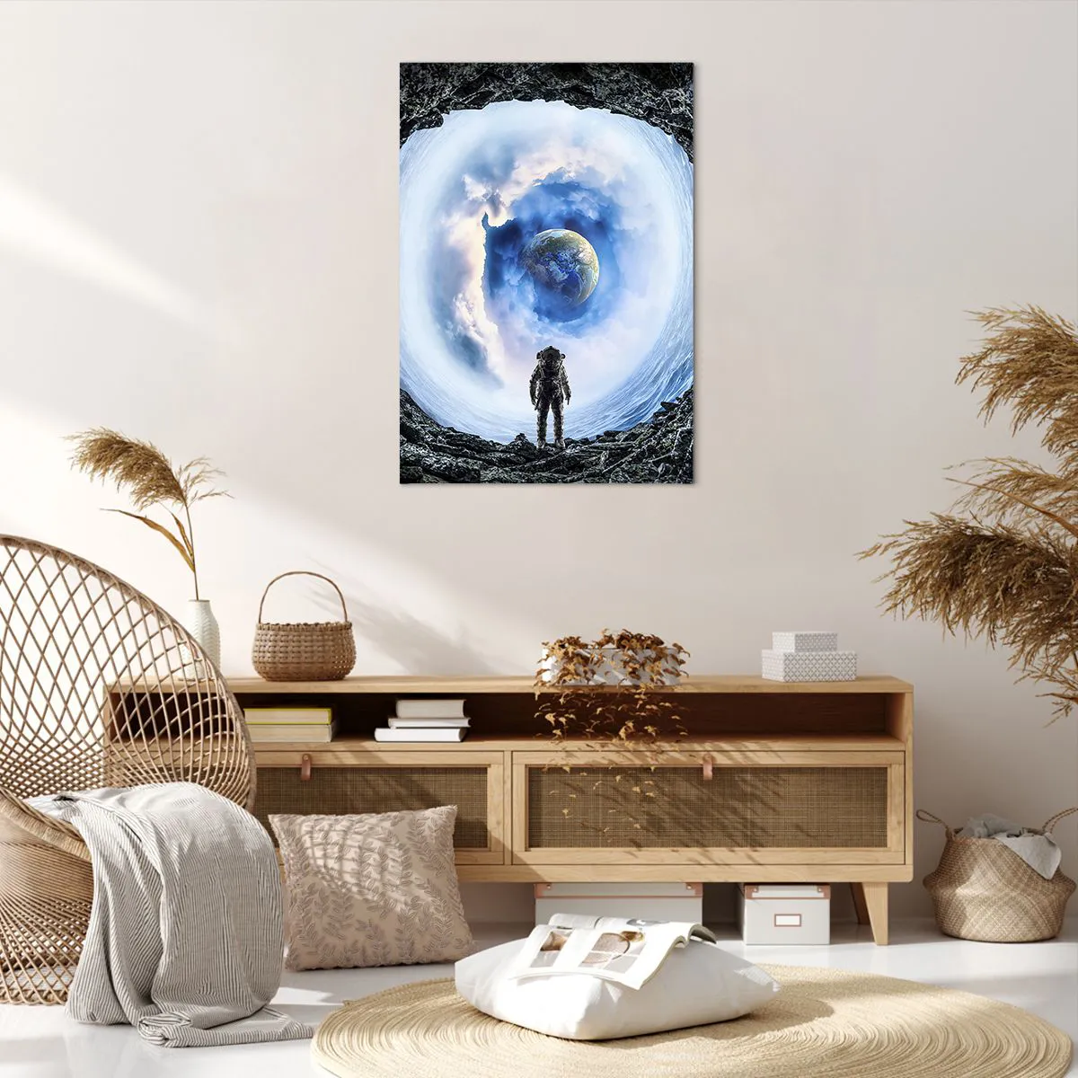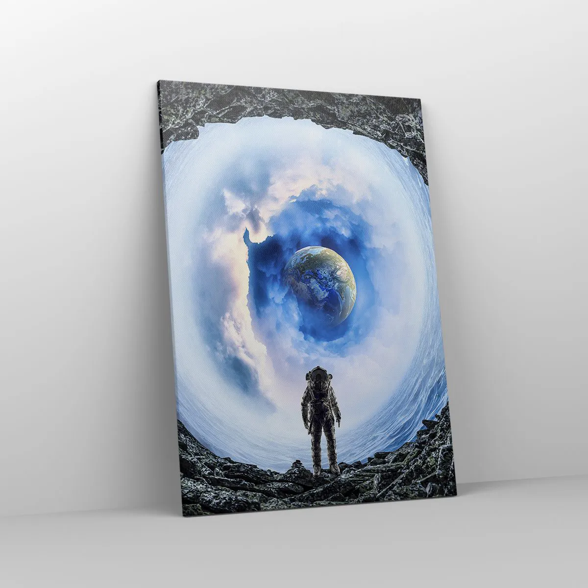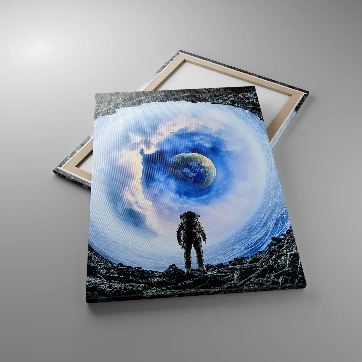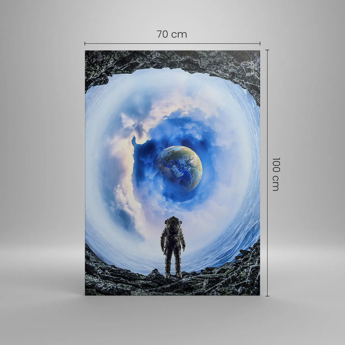 Lærredet er spændt op over rammen. Siderne og kanterne trykkes for at danne en fortsættelse af billedet. Maleriet er klar til at blive hængt op på væggen. Hvert produkt har en bøjle, der er fastgjort til rammen, og et samlesæt (skrue + dyvel).
