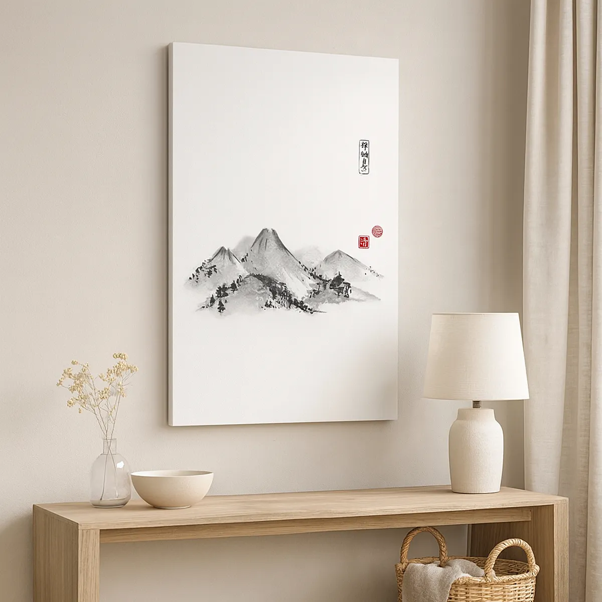 Lærredet er spændt op over rammen. Siderne og kanterne trykkes for at danne en fortsættelse af billedet. Maleriet er klar til at blive hængt op på væggen. Hvert produkt har en bøjle, der er fastgjort til rammen, og et samlesæt (skrue + dyvel).