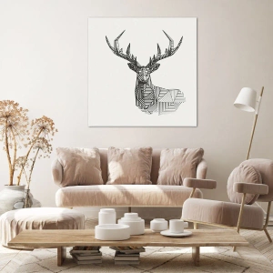 Lærredstryk - Billede på lærred - Hjorte i kubistisk stil - 70x100 cm