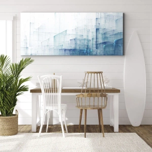 Lærredet er spændt op over rammen. Siderne og kanterne trykkes for at danne en fortsættelse af billedet. Maleriet er klar til at blive hængt op på væggen. Hvert produkt har en bøjle, der er fastgjort til rammen, og et samlesæt (skrue + dyvel).