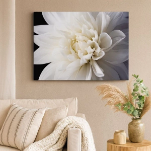 Den hvide blomsts delikatesse symboliserer renhed og skønhed, og dens subtile detaljer begejstrer med deres præcision. Kontrasten til den mørke baggrund giver kompositionen dybde og udtryksfuldhed, hvilket får maleriet til at tiltrække opmærksomhed og blive et fokuspunkt i dekorationen. Takket være sin minimalistiske stil passer det perfekt ind i en række forskellige interiørdesigns - fra moderne til klassisk.