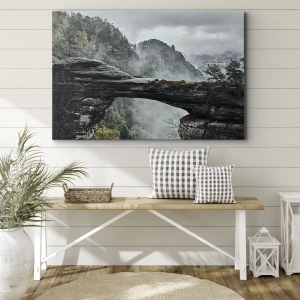 Lærredet er spændt op over rammen. Siderne og kanterne trykkes for at danne en fortsættelse af billedet. Maleriet er klar til at blive hængt op på væggen. Hvert produkt har en bøjle, der er fastgjort til rammen, og et samlesæt (skrue + dyvel).