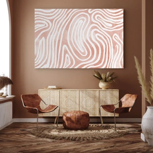 Lærredsbilledet "I en korallabyrint" er en unik dekoration, der kombinerer subtile farver med moderne design. Delikate pastelfarver i lyserød og hvid flettes sammen i et harmonisk arrangement af mønstre og skaber en rolig, men spændende komposition.
