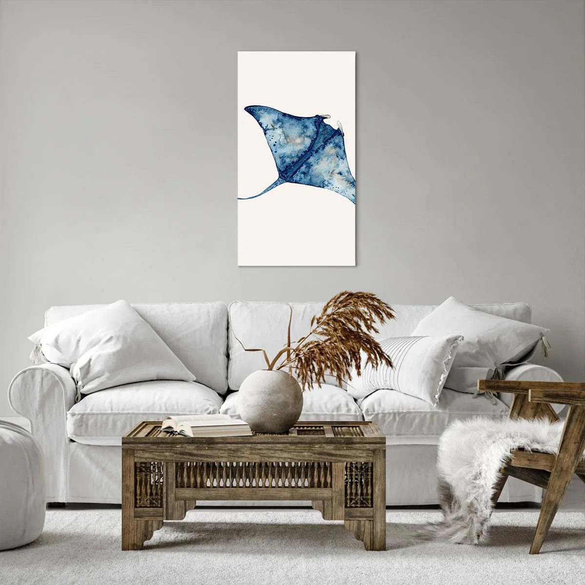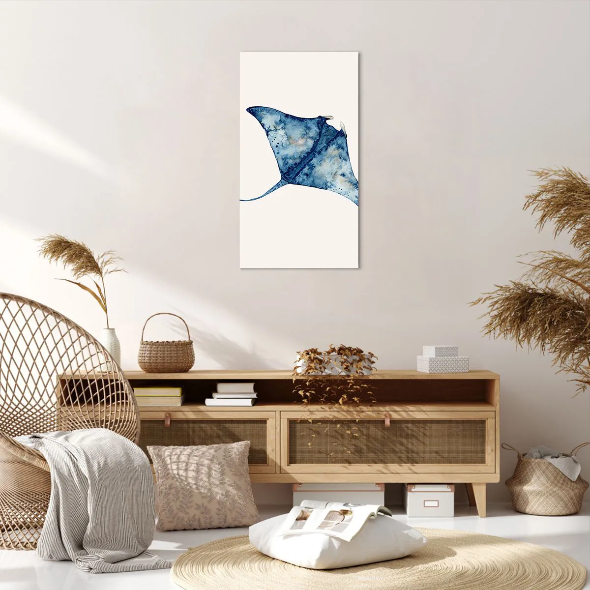 Lærredstryk - Billede på lærred - Liv i blåt - 55x100 cm
