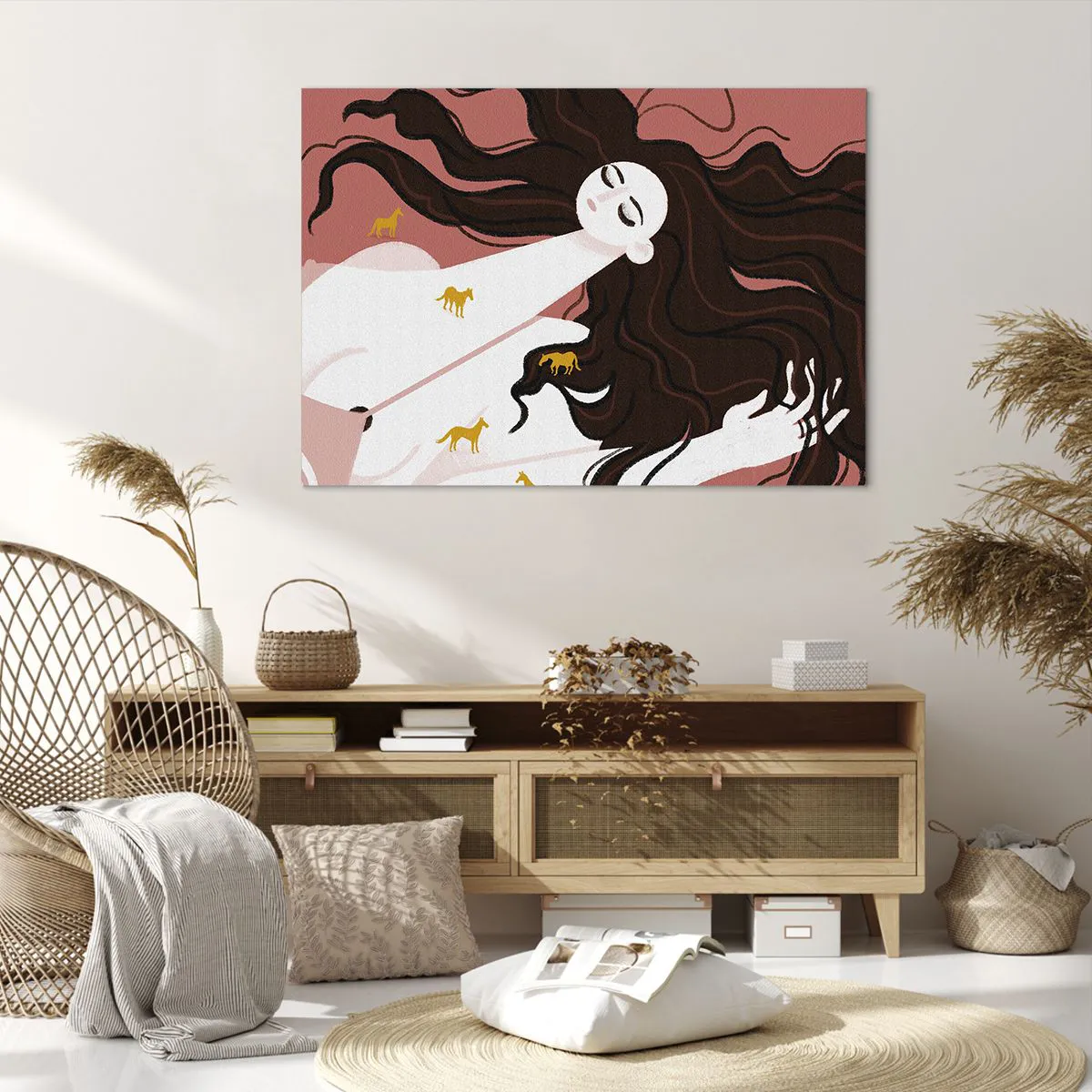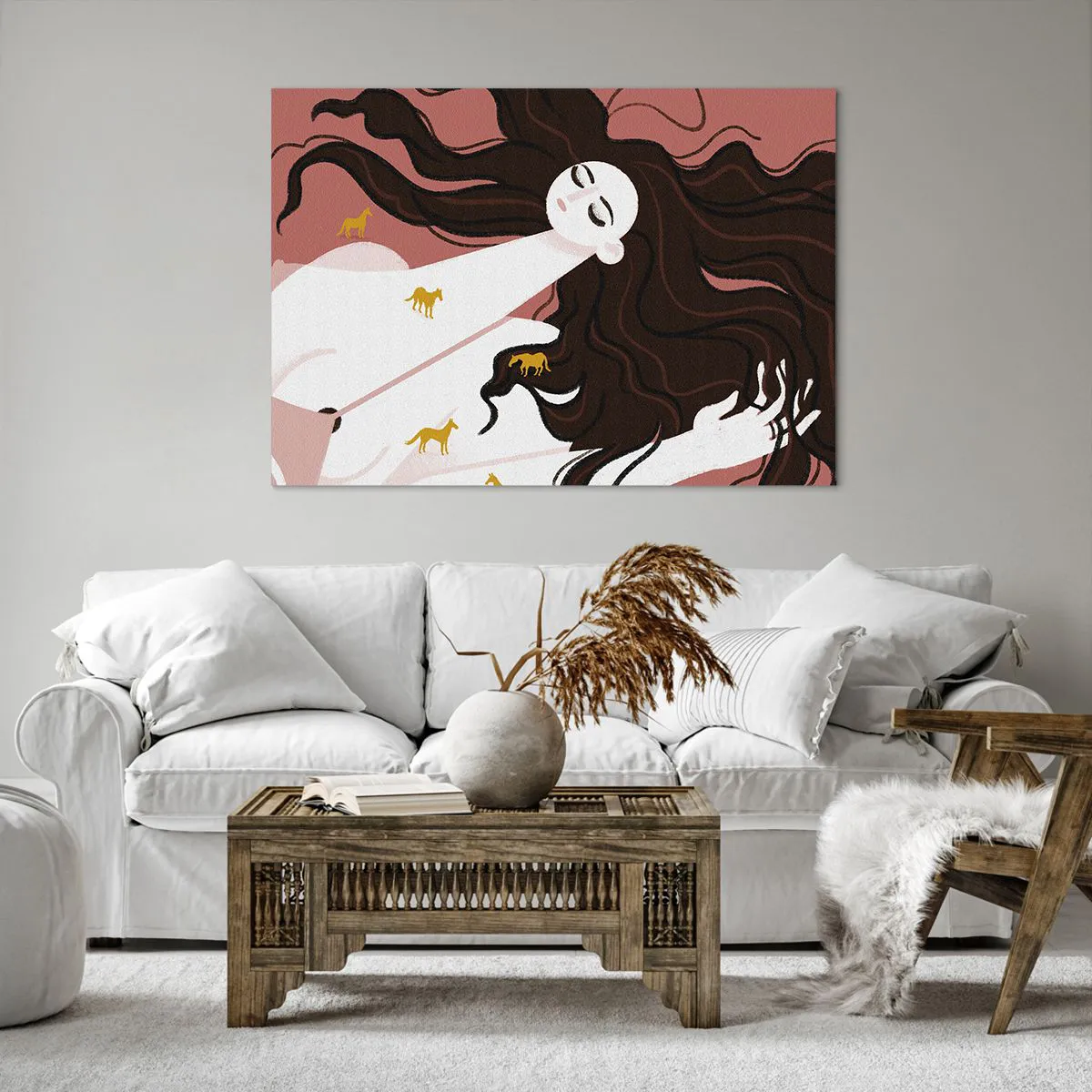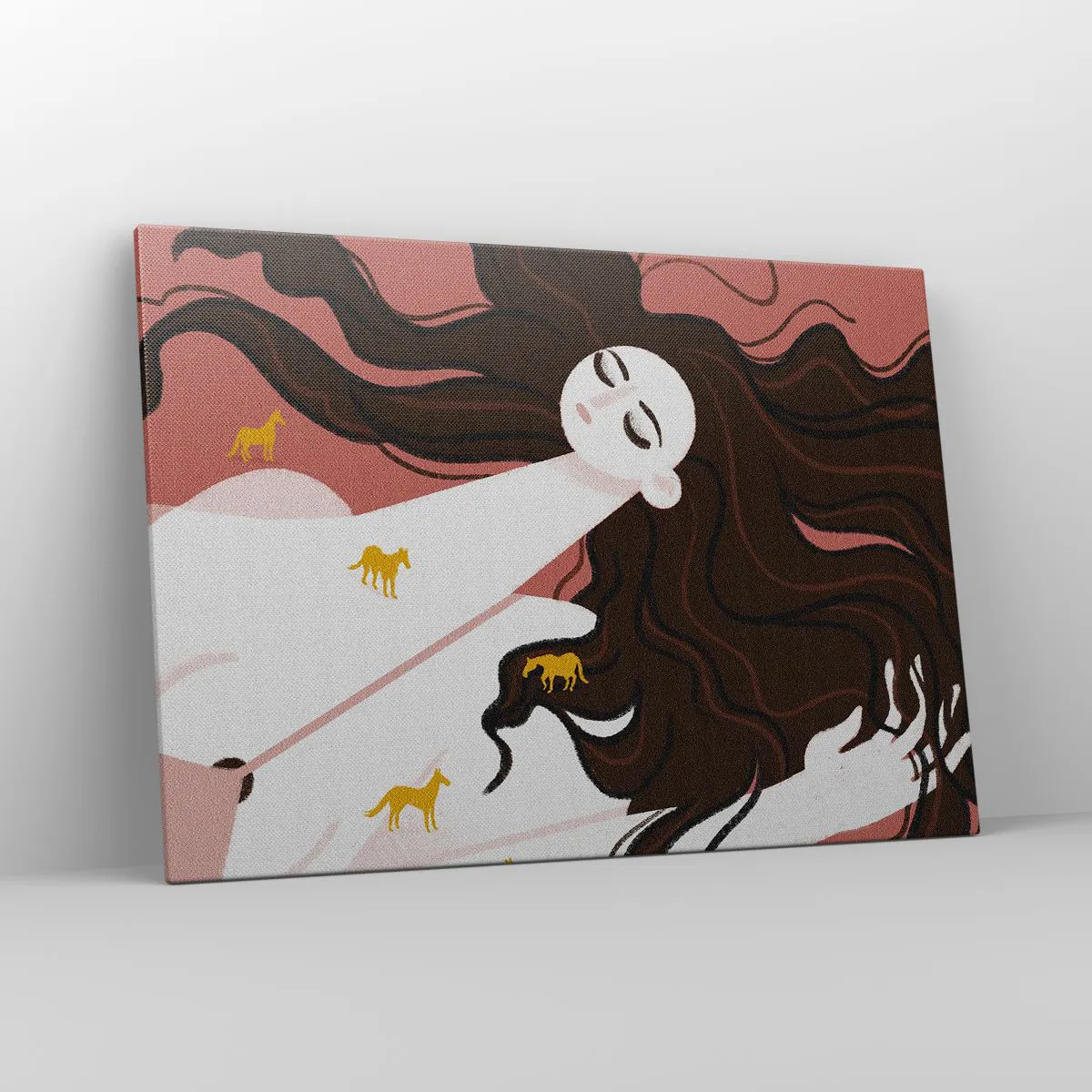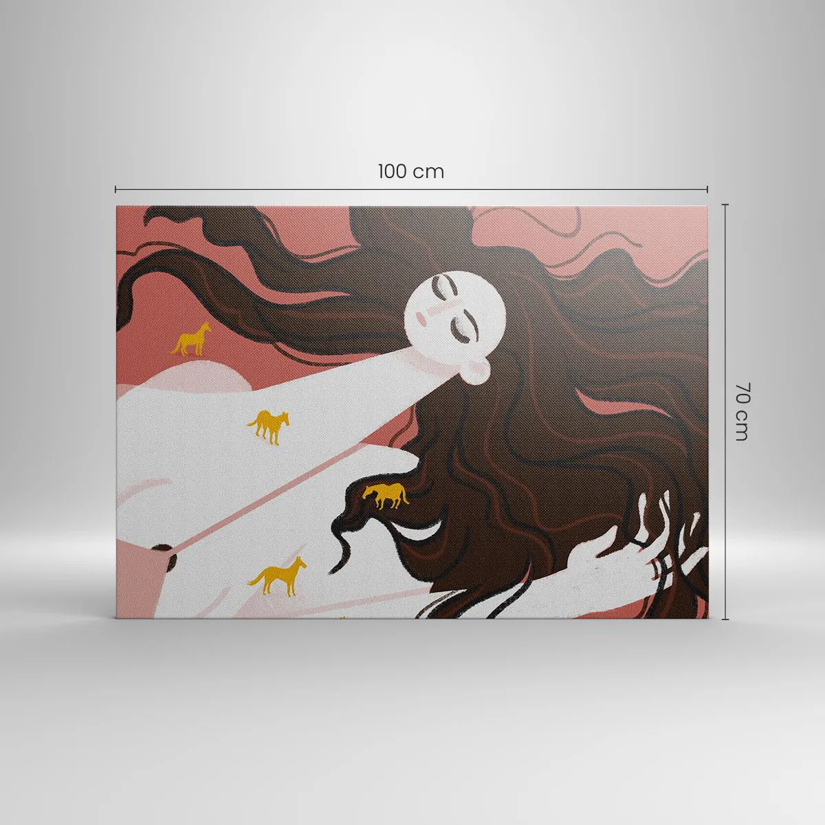 Lærredstryk - Billede på lærred - Drøm om en gylden hest - 100x70 cm