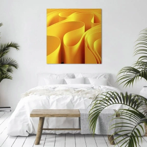 - Maleriet forestiller gule abstrakte bølger, der minder om solstråler, og som bringer varme og energi til moderne interiører.