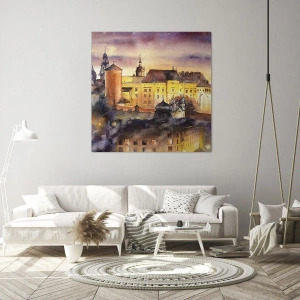 Lærredstryk - Billede på lærred - Et malerisk akvarelmaleri af et slot ved solnedgang - 70x50cm - En historie og en fortælling - Moderne vægdekoration til stue og soveværelse ARTTOR