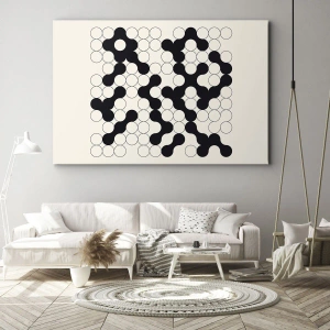 Lærredet er spændt op over rammen. Siderne og kanterne trykkes for at danne en fortsættelse af billedet. Maleriet er klar til at blive hængt op på væggen. Hvert produkt har en bøjle, der er fastgjort til rammen, og et samlesæt (skrue + dyvel).