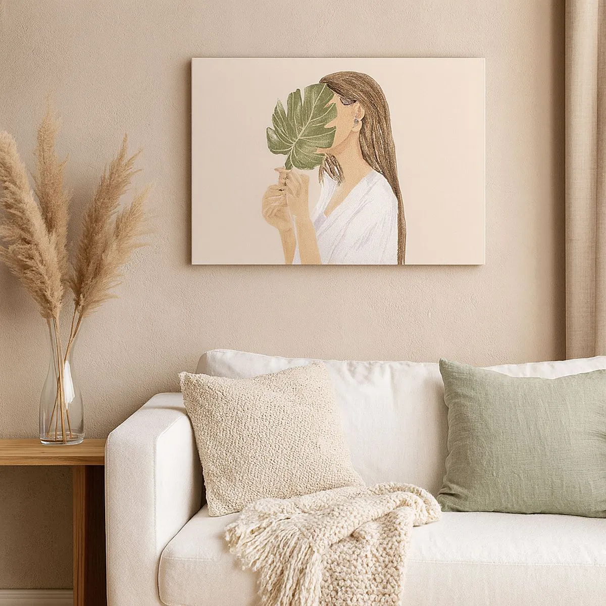 Lærredstryk - Billede på lærred - Mystisk portræt med en vifte - 120x80 cm