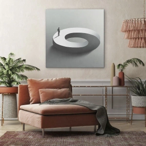 Lærredet er spændt op over rammen. Siderne og kanterne trykkes for at danne en fortsættelse af billedet. Maleriet er klar til at blive hængt op på væggen. Hvert produkt har en bøjle, der er fastgjort til rammen, og et samlesæt (skrue + dyvel).