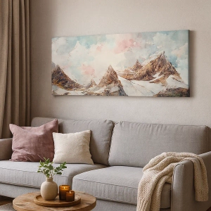 Lærredet er spændt op over rammen. Siderne og kanterne trykkes for at danne en fortsættelse af billedet. Maleriet er klar til at blive hængt op på væggen. Hvert produkt har en bøjle, der er fastgjort til rammen, og et samlesæt (skrue + dyvel).
