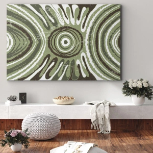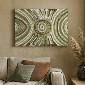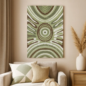 Det abstrakte motiv symboliserer kreativitet, balance og fantasi og understreger interiørets elegance. Varme nuancer af grønt og brunt tilføjer harmoni og subtilitet til kompositionen og introducerer en atmosfære af fred og inspiration til rummet. Det er det perfekte valg for dem, der værdsætter vægdekorationer, der bringer stil og en unik atmosfære til interiøret.
