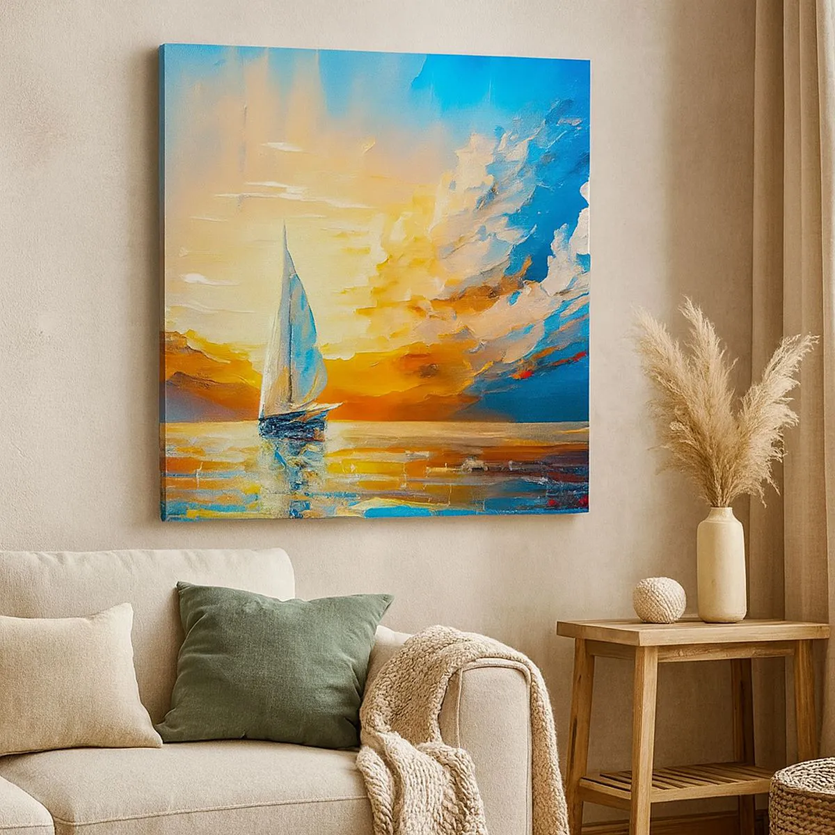 • Landskab, Nautisk, Sejlbåd, Maritime, Landskaber, Kunst, Til kontoret, Til arbejdsværelset, Til spisestuen, Til badeværelset, Til hallen, Til stuen, Til soveværelset, Blå, Orange, Kvadratisk