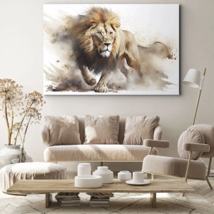 Lærredstryk - Billede på lærred - Et dynamisk portræt af en løve i naturlige farver. - 70x50cm - Kongen er taget af sted - Moderne vægdekoration til stue og soveværelse ARTTOR