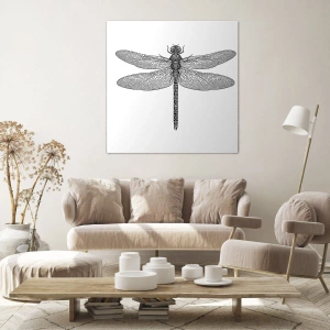 Lærredstryk - Billede på lærred - Sort-hvid tegning af en guldsmed på en hvid baggrund i minimalistisk stil - 70x50cm - Præcision i naturen - Moderne vægdekoration til stue og soveværelse ARTTOR
