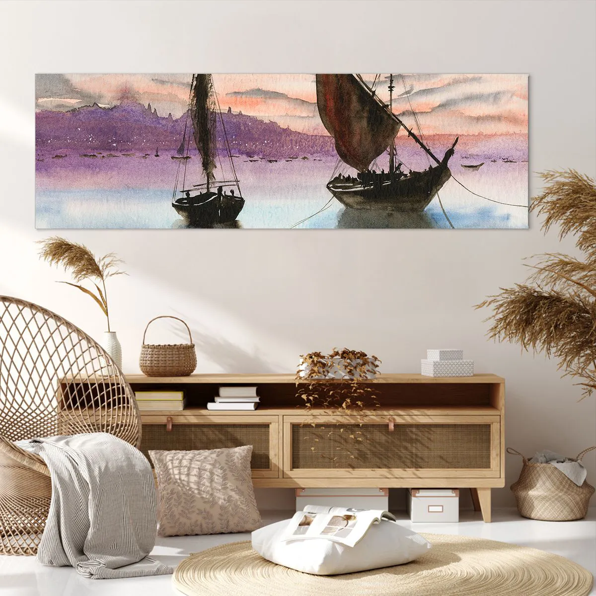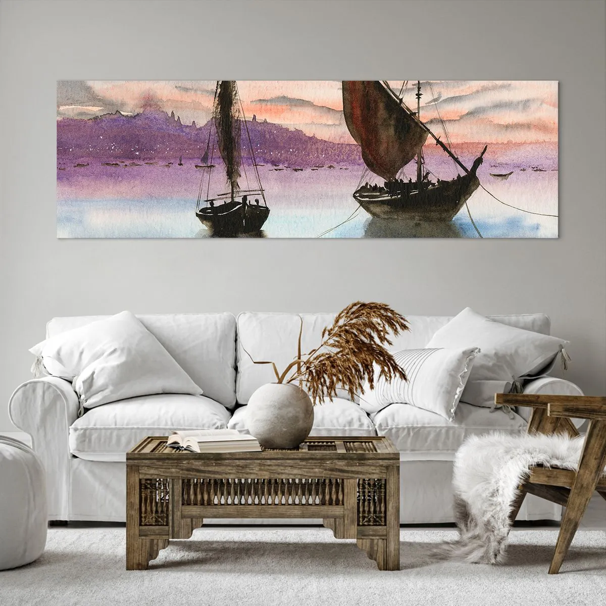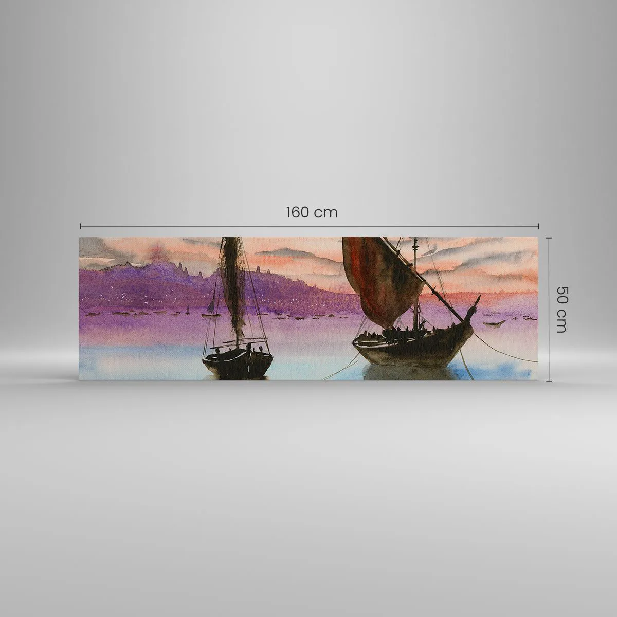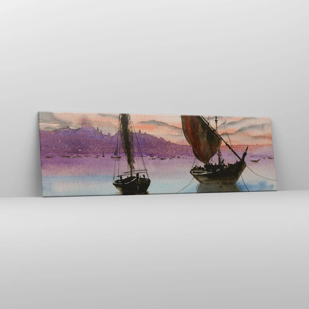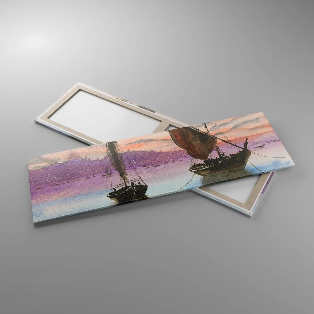 Lærredstryk - Billede på lærred - Aften i havnen - 160x50 cm