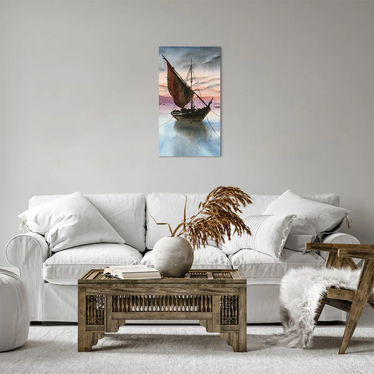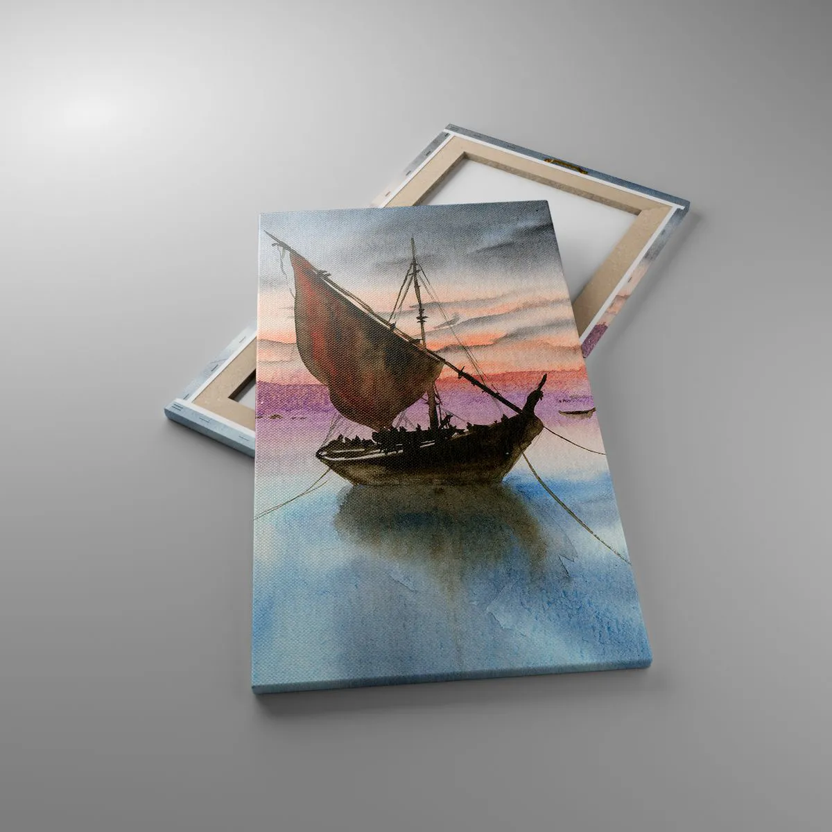 Lærredstryk - Billede på lærred - Aften i havnen - 45x80 cm