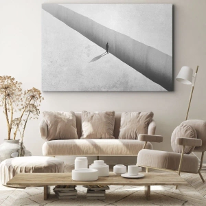 Lærredstryk - Billede på lærred - En ensom skikkelse står over en dyb kløft i en monokromatisk omgivelser. - 70x50cm - Lys destination - Moderne vægdekoration til stue og soveværelse ARTTOR
