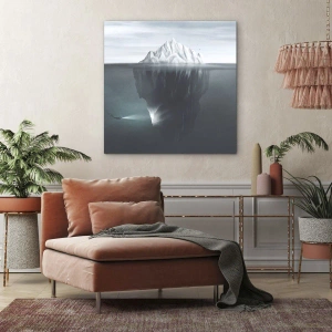 - Dette maleri forestiller et isbjerg i vandet med en dykker og en projektør under overfladen. Denne subtile og atmosfæriske komposition bringer harmoni og refleksion til ethvert interiør. Et ideelt valg for elskere af moderne kunst og natur.