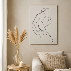 Lærredstryk - Billede på lærred - En minimalistisk silhuet i sort på en lys baggrund - 70x50cm - Intim skitse - Moderne vægdekoration til stue og soveværelse ARTTOR
