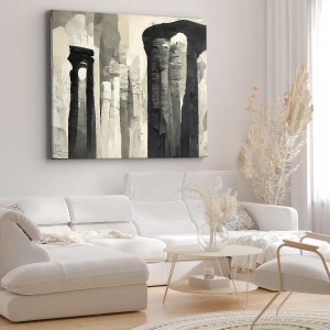 • Dette lærredstryk på 70x50 cm forestiller antikke søjler i en monokromatisk setting. Perfekt til klassiske eller moderne interiører, det bringer harmoni og elegance.