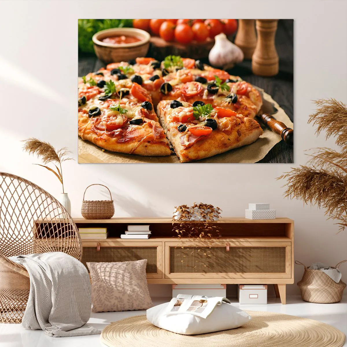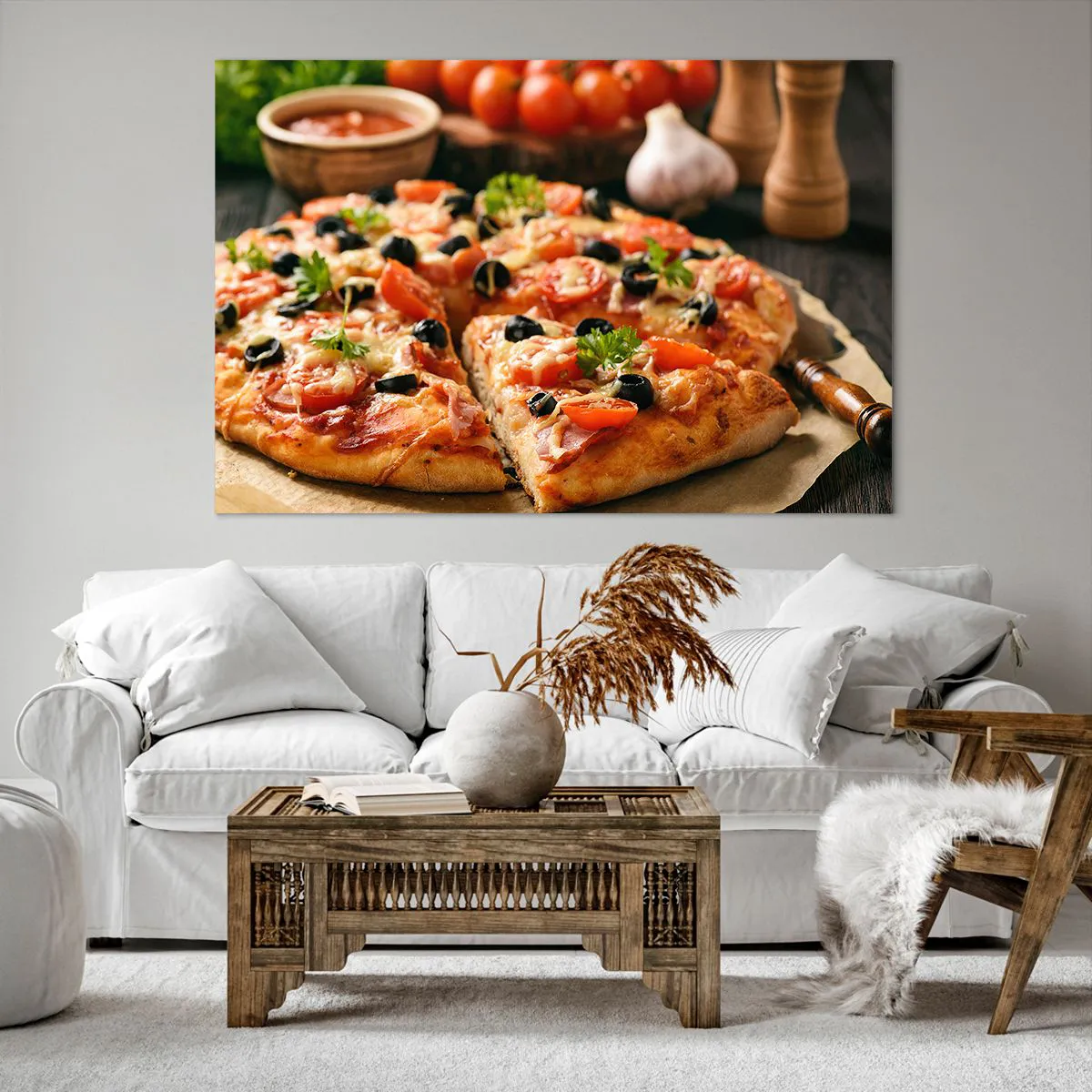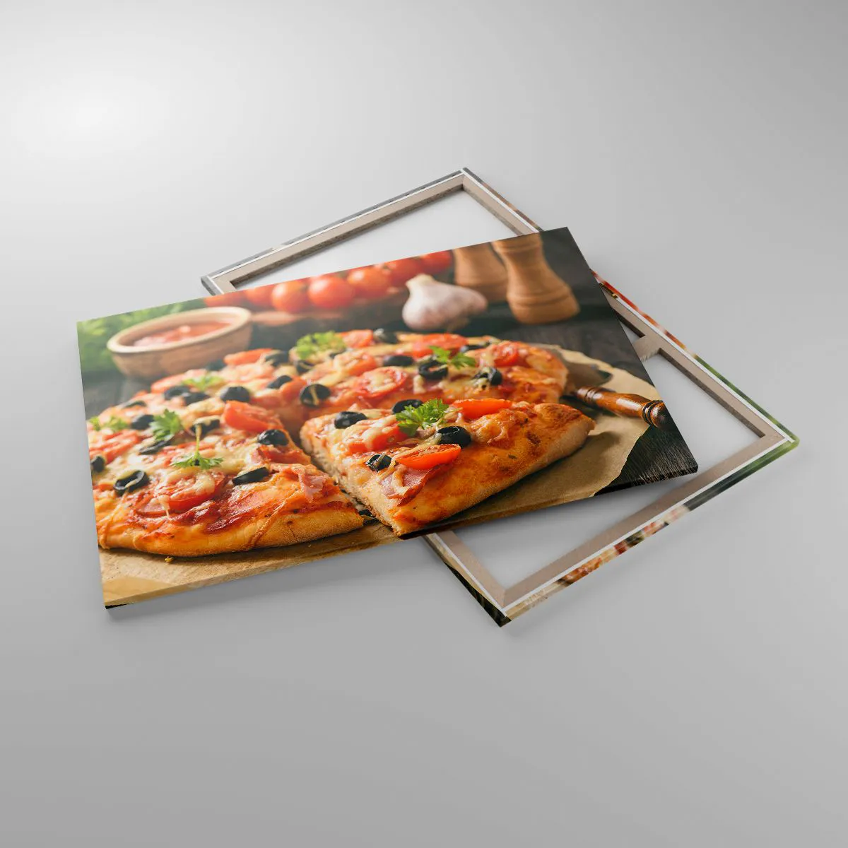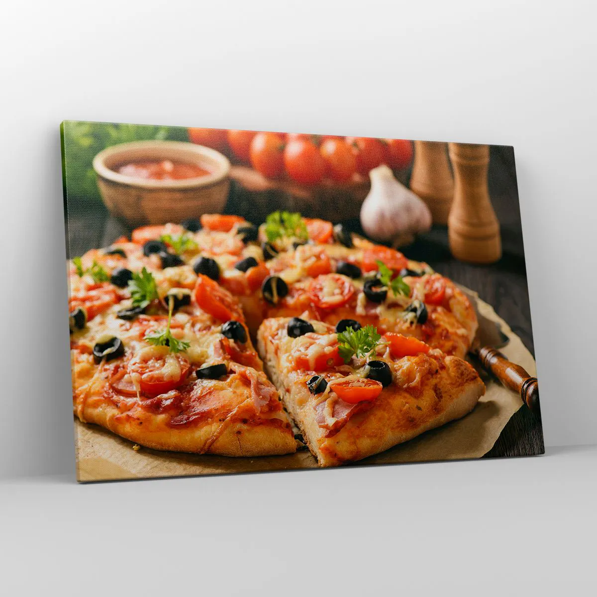 Lærredet er spændt op over rammen. Siderne og kanterne trykkes for at danne en fortsættelse af billedet. Maleriet er klar til at blive hængt op på væggen. Hvert produkt har en bøjle, der er fastgjort til rammen, og et samlesæt (skrue + dyvel).