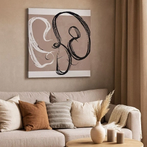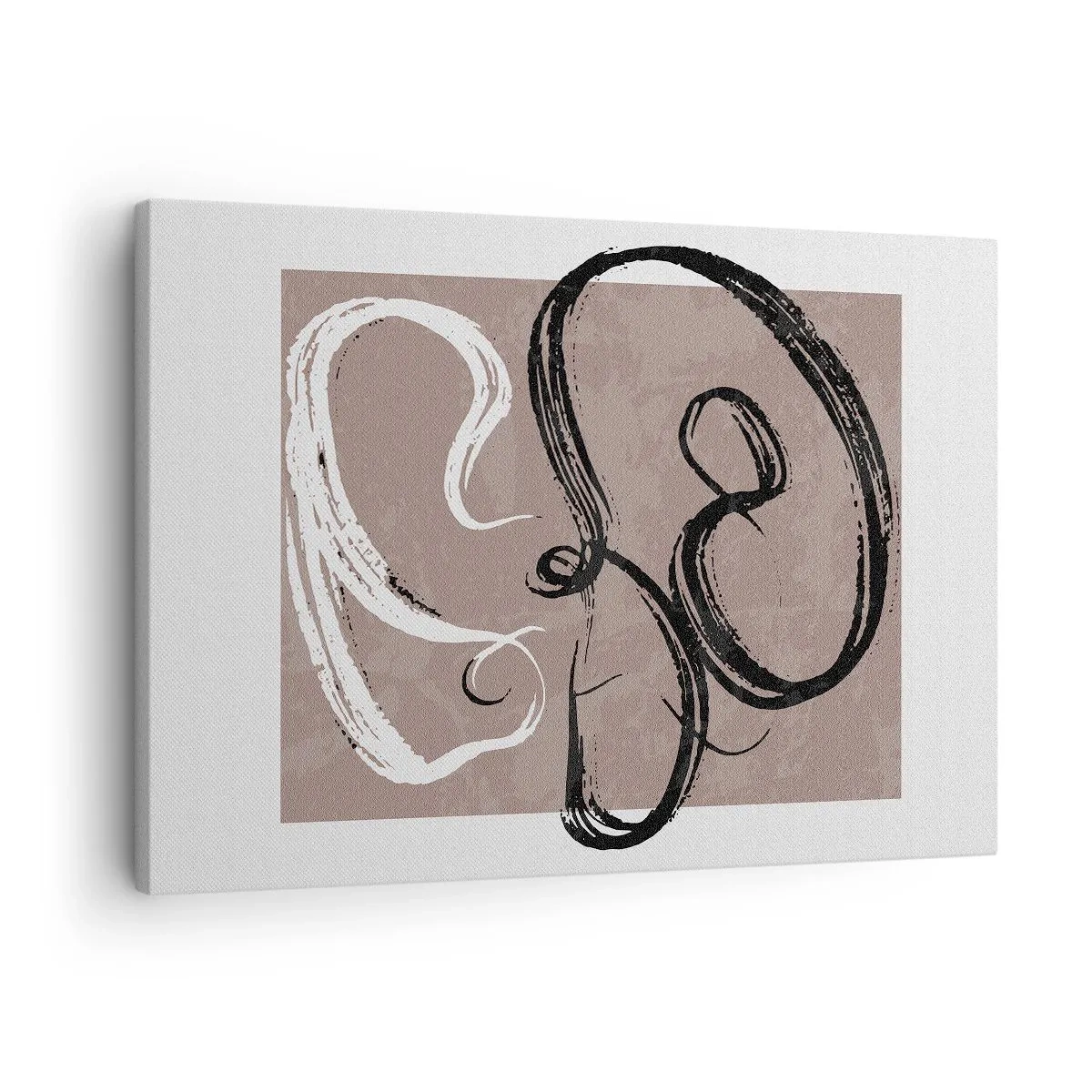 Lærredstryk - Billede på lærred - Sort og hvid abstraktion på en beige baggrund - 70x50cm - Komposition - en søgen efter fuldstændighed - Moderne vægdekoration til stue og soveværelse ARTTOR