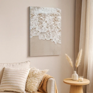 Lærredet er spændt op over rammen. Siderne og kanterne trykkes for at danne en fortsættelse af billedet. Maleriet er klar til at blive hængt op på væggen. Hvert produkt har en bøjle, der er fastgjort til rammen, og et samlesæt (skrue + dyvel).