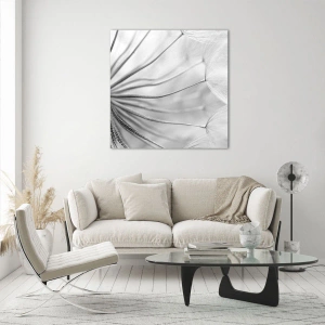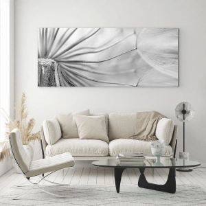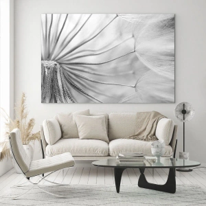 Billedet på glas er lavet af 4 mm tykt glas. Glassets kanter har et mat trapezformet snit. Billedet er sikkert at bruge og klar til at hænge op - der er metalophæng fastgjort på bagsiden af billedet og skumafstandsstykker til at regulere billedets jævne afstand fra væggen.