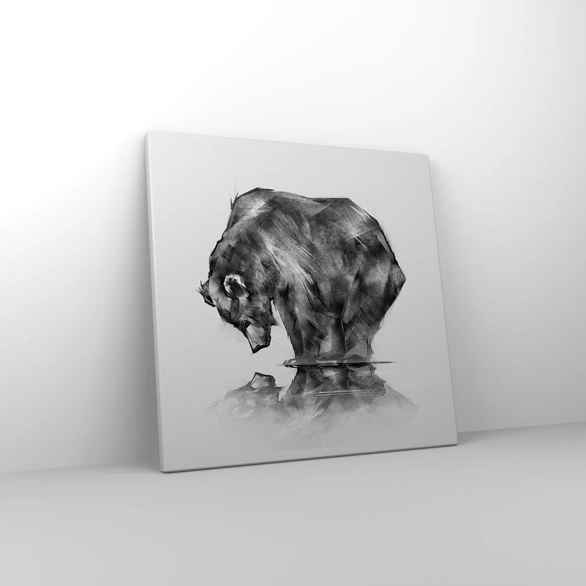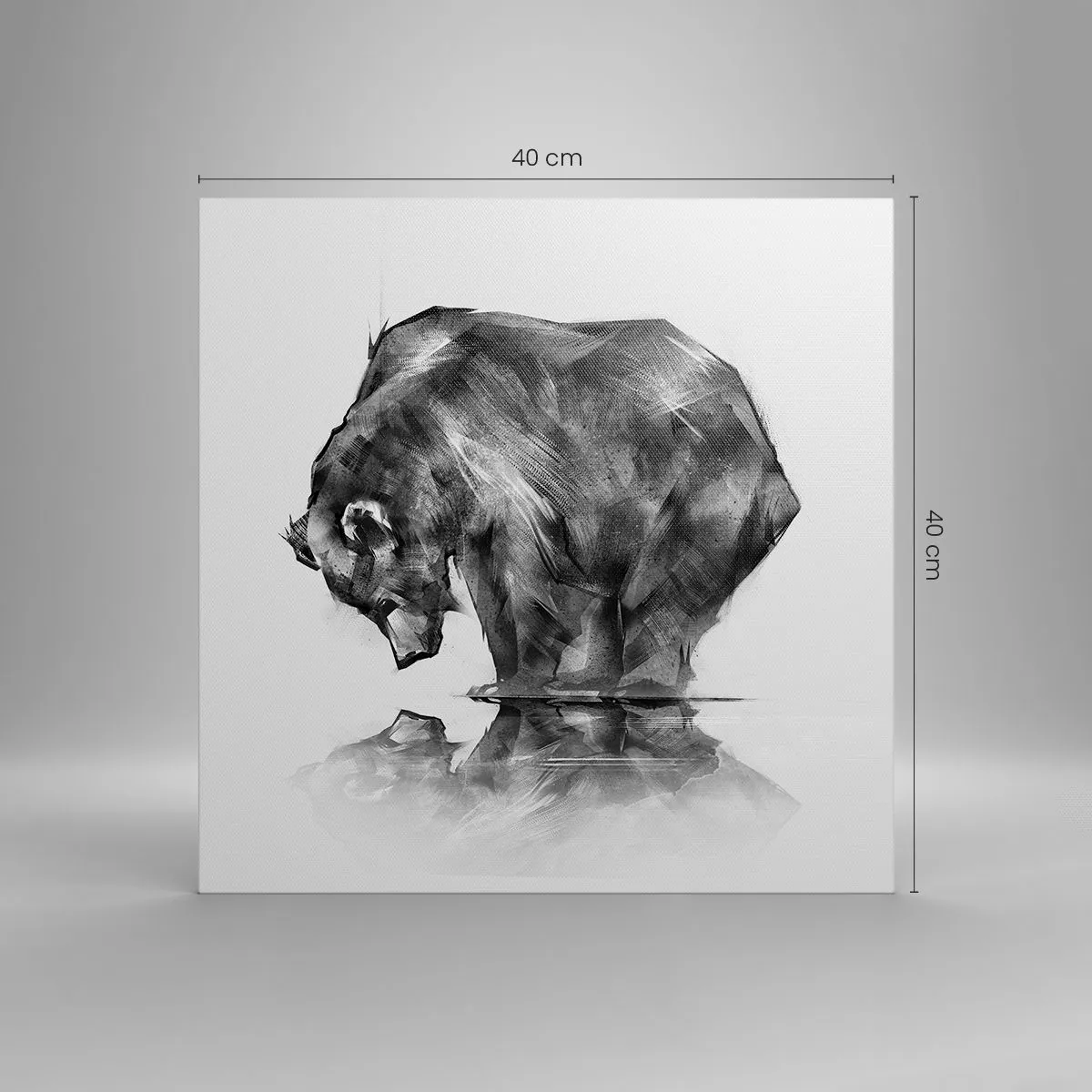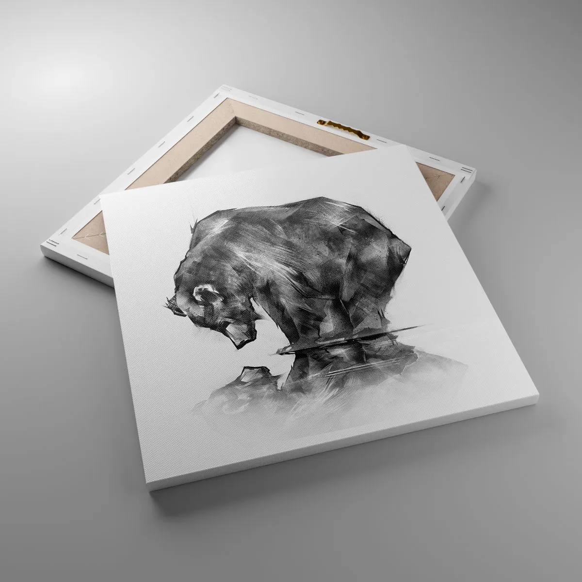 Lærredet er spændt op over rammen. Siderne og kanterne trykkes for at danne en fortsættelse af billedet. Maleriet er klar til at blive hængt op på væggen. Hvert produkt har en bøjle, der er fastgjort til rammen, og et samlesæt (skrue + dyvel).