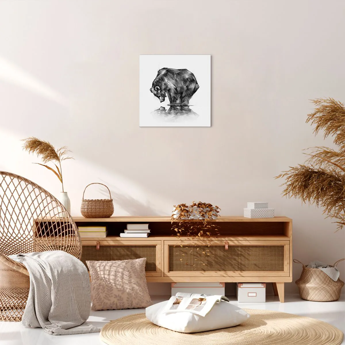 Lærredet, der bruges til vores malerier, er et vandtæt stof af høj kvalitet med en vægt på 240g/m2. Den er dedikeret til professionelle plottere, der muliggør produktion af økologiske print. Vi bruger økologisk, lugtfri og holdbar blæk med dyb farvemætning