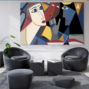Billede på glas - Kubistisk samtale - 70x70 cm