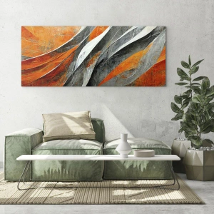 Vægbillede - Varme og Kulde - Abstrakte Striber i nuancer af Orange og Grå