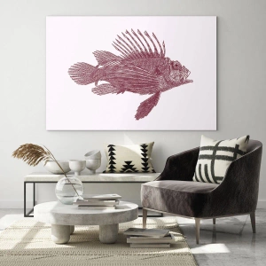 Billede på glas - Skitse af en eksotisk fisk i bordeauxrød farve på en lys baggrund - 70x50cm - En beboer i eksotiske farvande - Moderne vægdekoration til stue og soveværelse ARTTOR