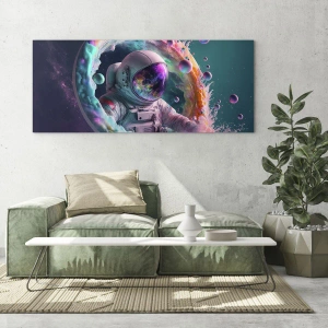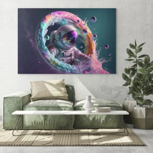 - Et fantastisk maleri af en astronaut i surrealistiske, farverige omgivelser. Galaktisk energi hvirvler i baggrunden og skaber en dynamisk, kosmisk atmosfære. En perfekt dekoration til moderne interiører og teenageværelser.