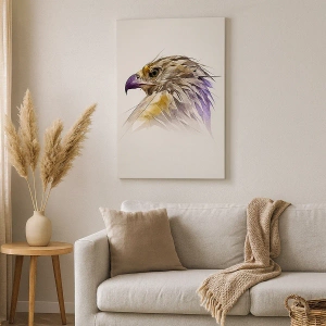 Lærredstryk - Billede på lærred - Kunstnerisk portræt af en ørn i pastelfarver - 70x50cm - Portræt af en kriger - Moderne vægdekoration til stue og soveværelse ARTTOR