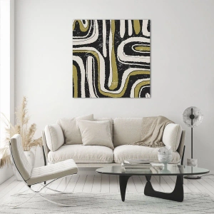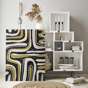 Motivet med linjer og kurver kan forbindes med den urbane jungle, veje og gyder, som samtidig organiserer rummet og introducerer en følelse af kaos. Maleriet inviterer til fortolkning – alle kan se noget forskelligt i det. Takket være guldaccenterne fremstår kompositionen elegance og ædelhed, hvilket gør den til en fremragende vægdekoration til både moderne og mere klassiske interiører.