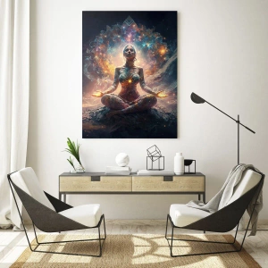 Dette glastryk er en unik vægdekoration, der kombinerer modernitet og et spirituelt budskab i samtidskunstens æstetik. Motivet meditation, energistrømmen og kvindens tilstedeværelse som kilde til harmoni skaber et dybt, inspirerende rum til kontemplation og ro.