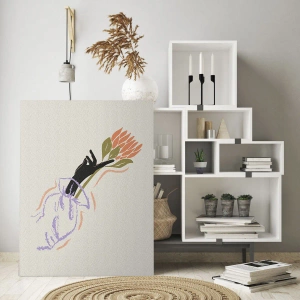 Billede på glas - En stiliseret hånd med en blomsterbuket tegnet med pastelfarvede linjer. - 70x50cm - En søsterlig berøring - Moderne vægdekoration til stue og soveværelse ARTTOR