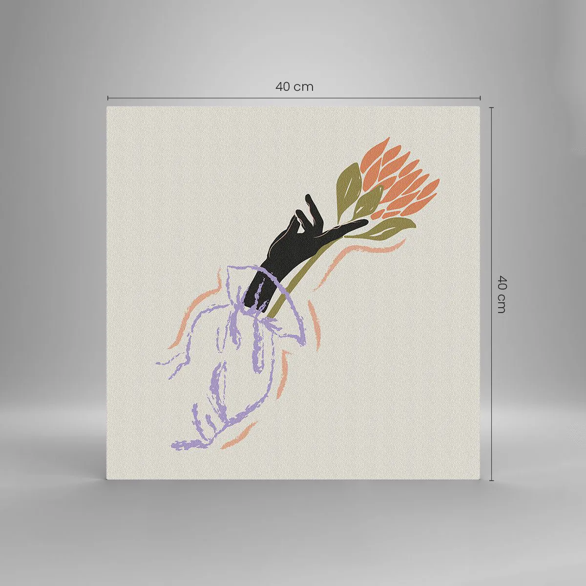 Billede på glas - En søsterlig berøring - 40x40 cm