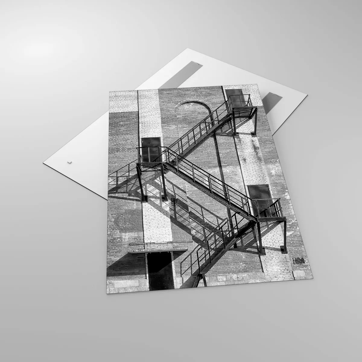 Billedet på glas er lavet af 4 mm tykt glas. Glassets kanter har et mat trapezformet snit. Billedet er sikkert at bruge og klar til at hænge op - der er metalophæng fastgjort på bagsiden af billedet og skumafstandsstykker til at regulere billedets jævne afstand fra væggen.