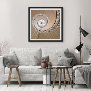 Plakat i sort ramme - Fotografi af en vindeltrappe med en dekorativ balustrade - 50x70cm - I midten af en skal - Moderne vægdekoration til stue og soveværelse ARTTOR